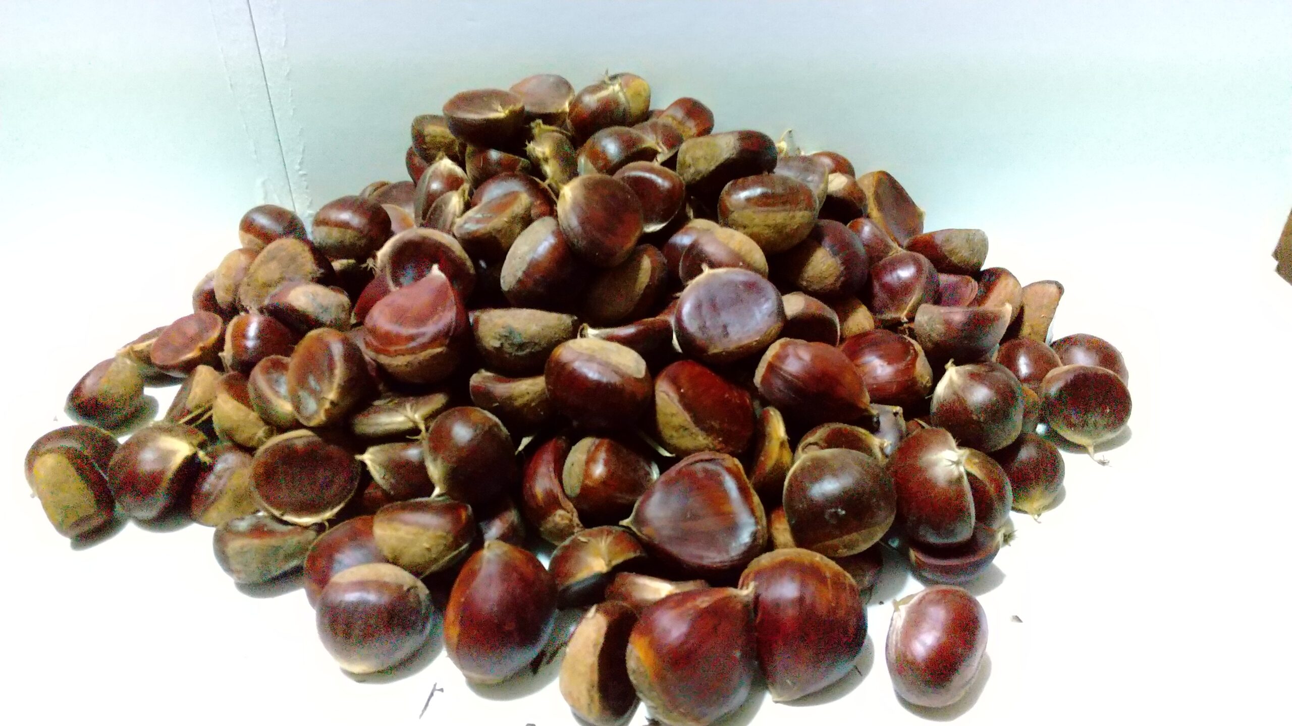 写真は、雄紀が3年ほど前に植えた4本の栗の木から取れたものです。これがすべてではありません。2メートほどに育った栗の木4本からの収穫総量はおそらく5キロくらいにはなったと思います。無農薬、無肥料の地で育った栗ですが、茹でたものを食べてみると、甘味を感じます。もち米と一緒に炊き、栗ご飯を頂だいています。プロのパティシエさんであれば、この素材から色々なスイーツが生まれることでしょう。