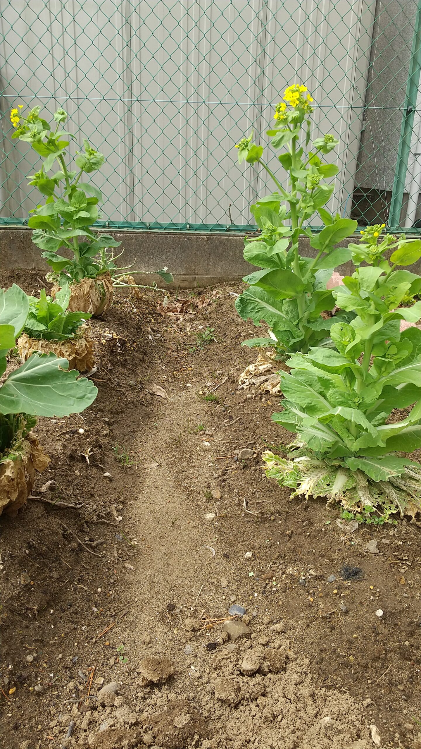 白菜のほか、キャベツ、大根、ブロッコリ、小松菜もアブラナ科なので、ほっておくとみな私たちの目を楽しませてくれる花を咲かせます。