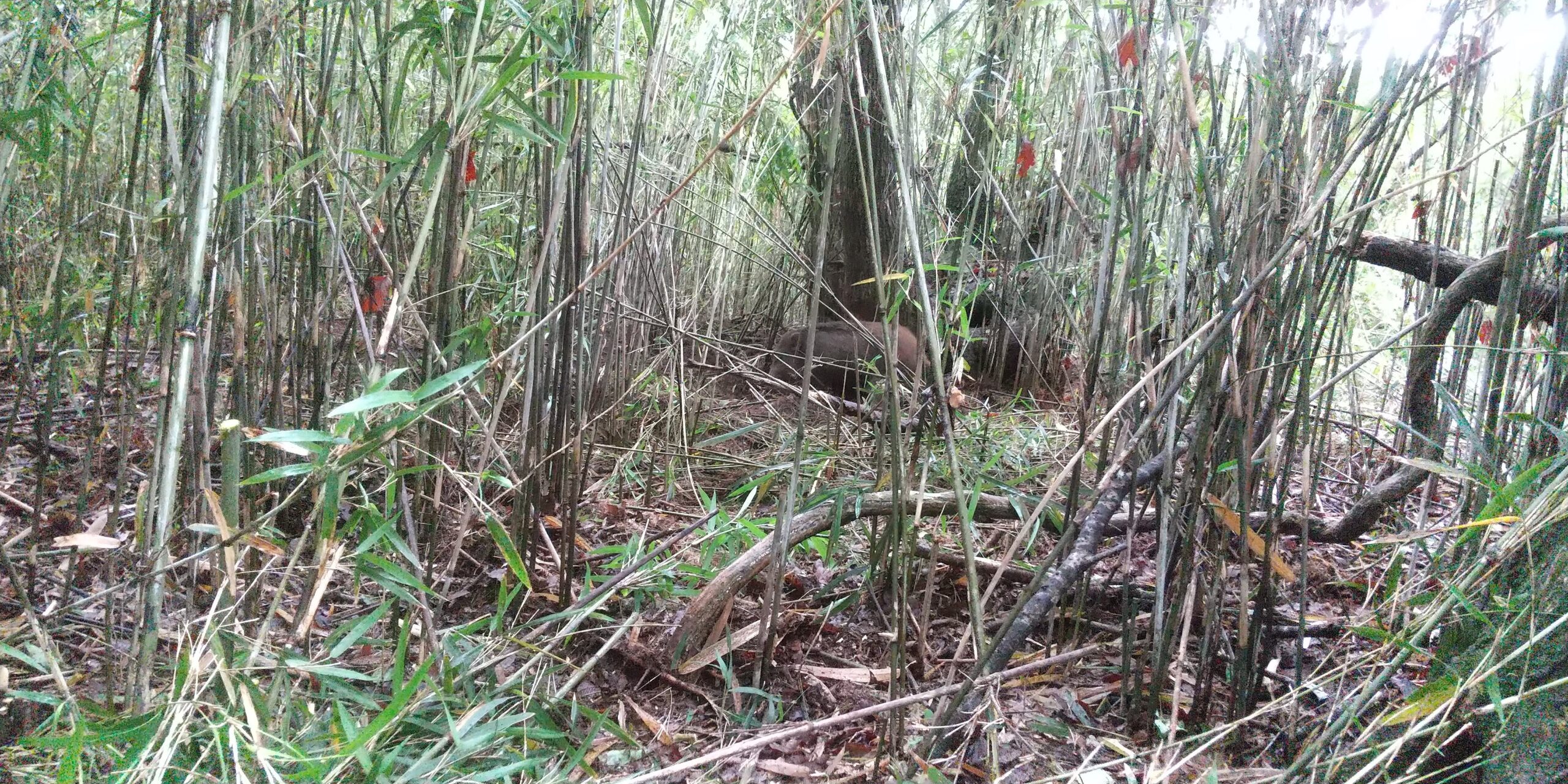 最初は↓の様に完全な藪と竹林と森が広がるばかりの山でイノシシも徘徊していましたが。