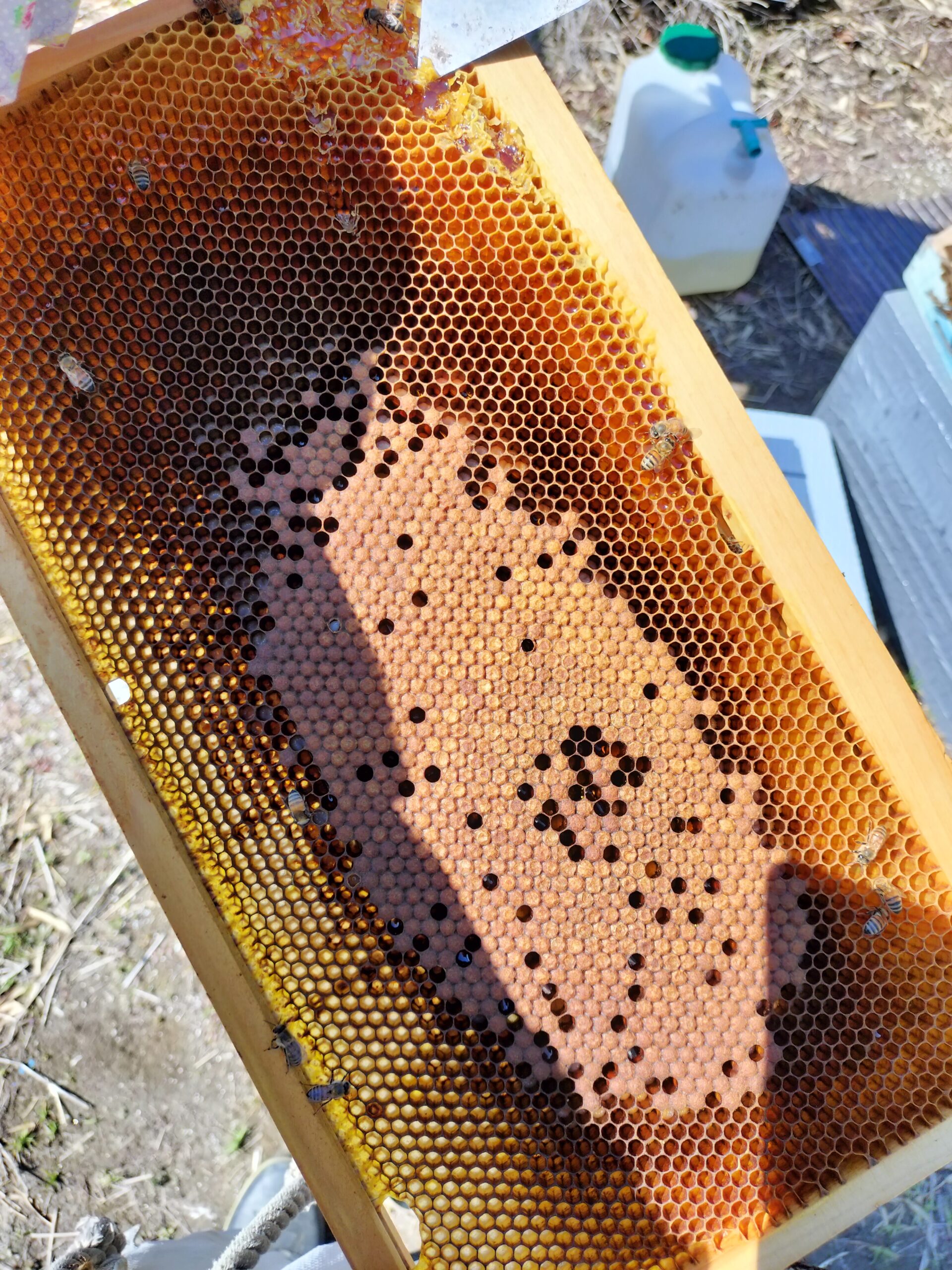 あと、ミツバチが非常食として巣に蓋をしてため込んでいたはちみつがこの時期結構残っています。