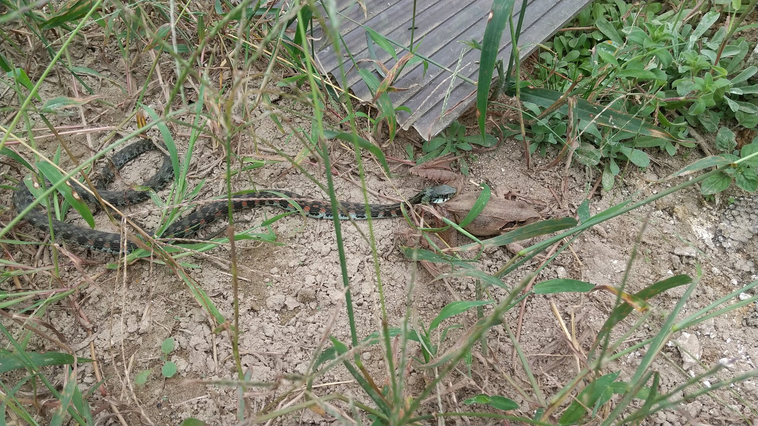 それにこのヘビ、棒で叩かれたりすると首の後ろの毒腺の毒が飛び散りそれが目に入るとひどい炎症を起こしたりします。触らぬヘビに祟り無し。どうせほぼカエルしか食べない無害と言っていいヘビなので放っておきましょうね。