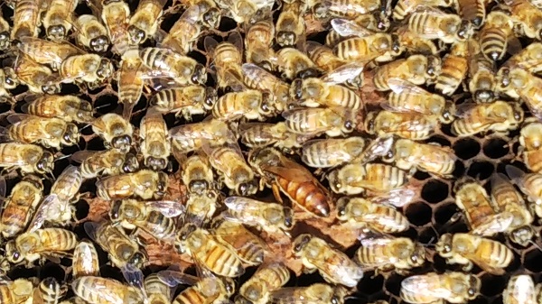 私たち養蜂家は、ミツバチの社会として一つの巣箱を一群と呼びますが、その構成は、女王蜂一匹、雌の働きバチがおおよそ8-9割、そして残りは雄バチによって構成されます。